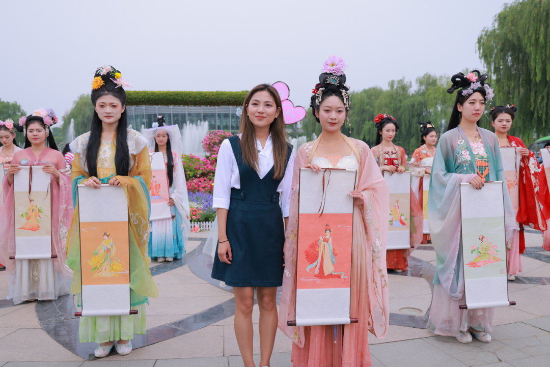 走进造型别致的活动会场入口,在花卉装点的活动广场前可以与鸽子互动,还有十二花神汉服巡游表演。演员们身着造型各异又别致精美的汉服,以中国古代传统节日“花朝节”为背景,渲染出十二个月的花神形象,展现了中国传统文化的独有审美。