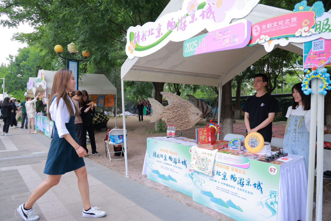 不只是文化表演及满园的花卉春色,活动会场还有北京市多家单位、企业开设的展台,它们带来了众多文旅新产品、新服务,并向全球游客发出了北京邀请。