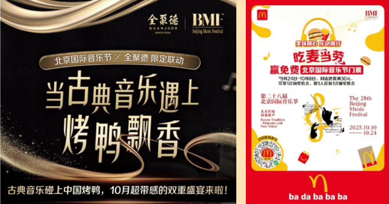 一是打造“音乐+商业”,蓝色港湾、华贸中心、秀水街等热门商圈的600余家商户推出凭音乐节票根优惠活动,“北京礼物”门店推出票根打折活动,还将发放200万文旅消费券。联动《中国厨房》交响乐创新作品,全聚德集团、麦当劳等多个品牌的500余家餐饮门店推出主题套餐、限定周边及专享折扣。