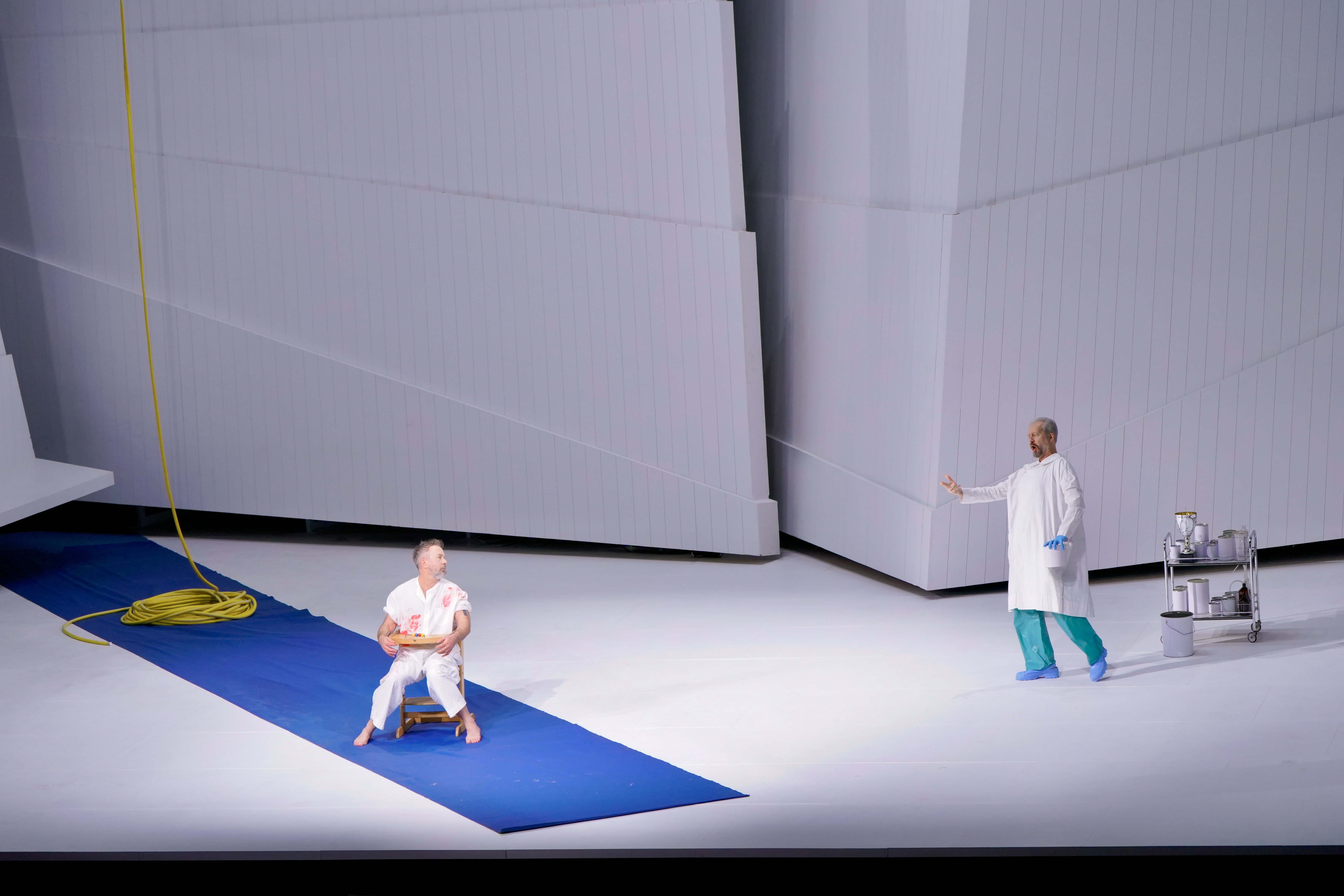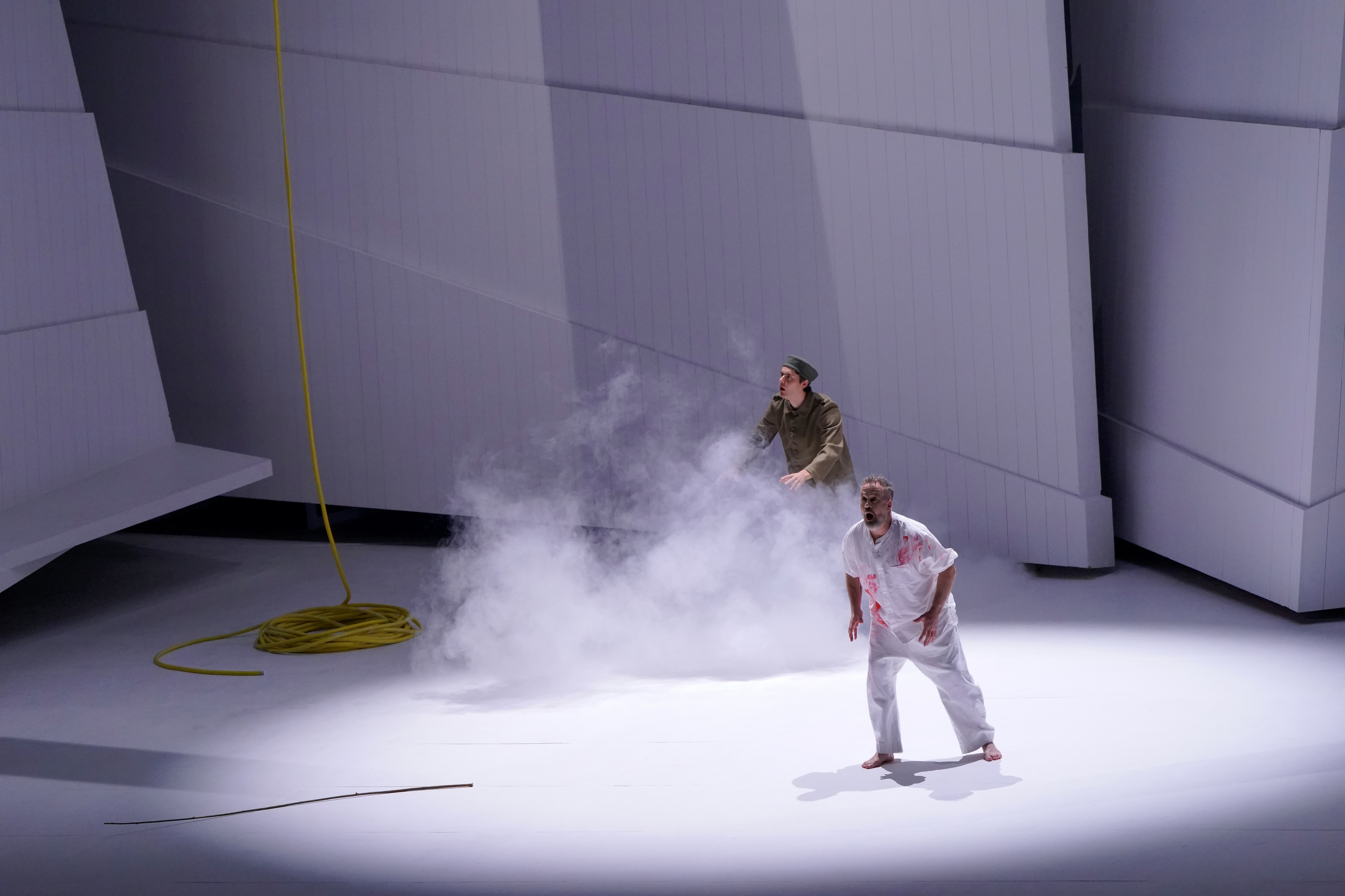 《沃采克》改编自德国天才文学家格奥尔格·毕希纳的残本《沃伊采克》。它突破传统歌剧以精英角色为主角的模式,聚焦底层小人物的悲剧命运,将无调性音乐语言与表现主义戏剧完美融合。本次演出版本于2025年6月在比利时完成世界首演,由当代戏剧巨擘约翰·西蒙斯执导。其舞美设计将表现主义美学推向极致——扭曲变形的空间布置、与角色高度贴合的服装效果以及充满诗意和寓言感的舞台调度,深刻挖掘出作品的内涵。
