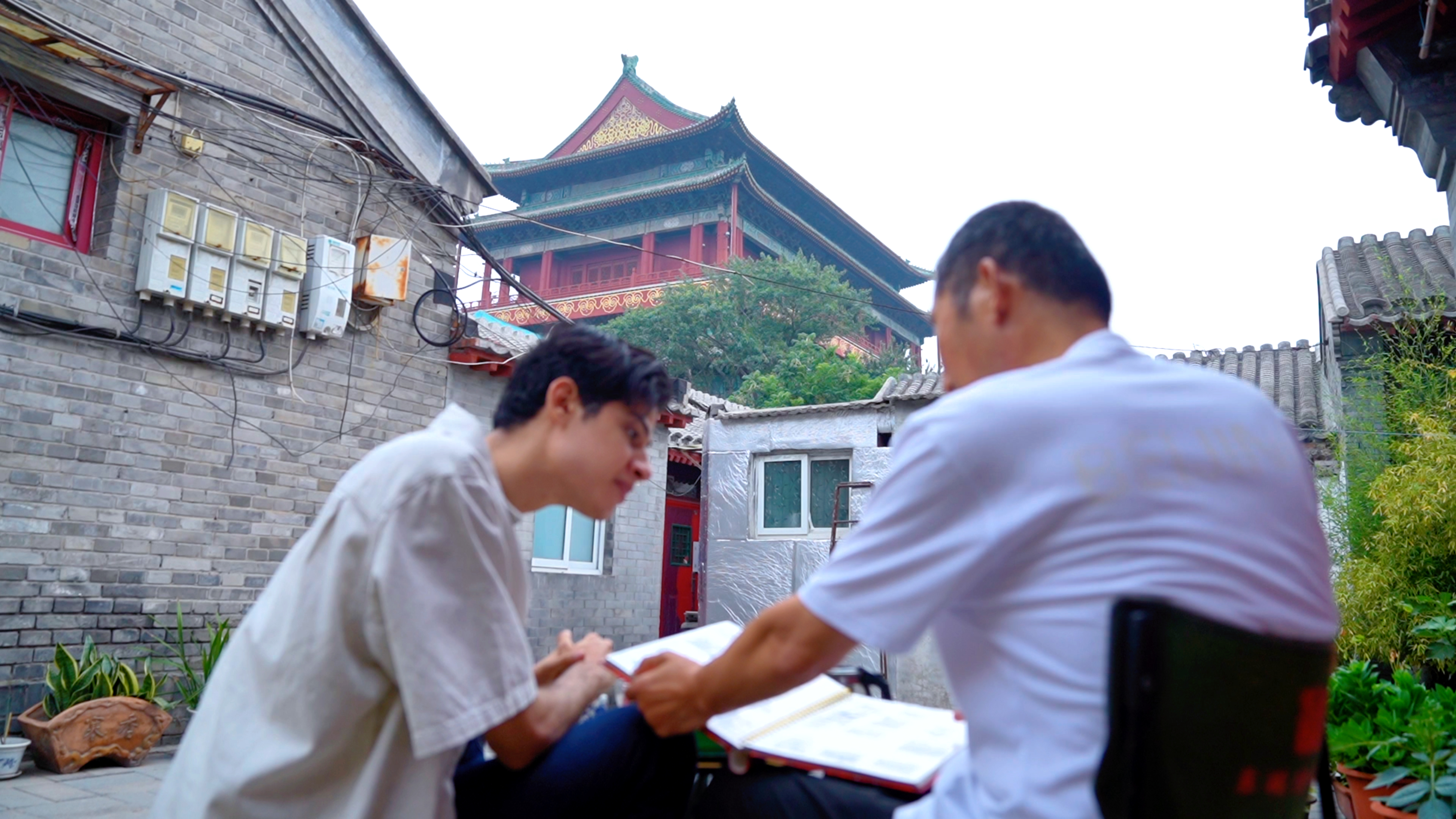 沿着北京中轴线从南至北,来自埃及的刘正曦一路骑行,感受了皇家宫苑与市井生活的异同,更触摸到传统古都与现代城市的融合。在鼓楼这处时间与文化的交汇处,骑行至此的刘正曦与范大爷一道,去体会鼓楼所特有的故事与记忆。