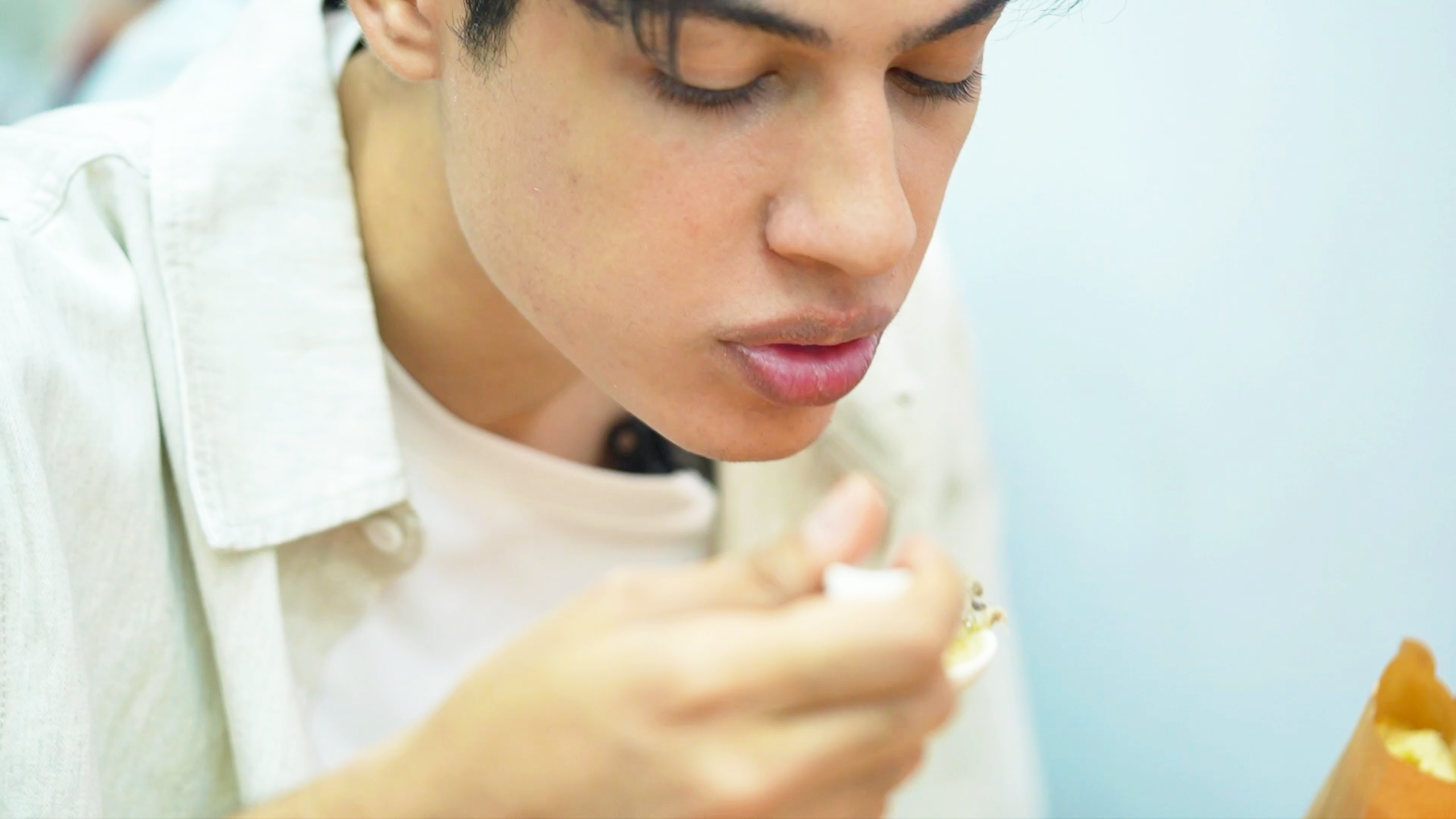 品尝一口茶汤,粘稠又甜而不腻的口感征服了刘正曦。白卷即是“奶卷”,由奶皮搭配山楂豆沙馅做成,口感酸甜清爽,配上茶汤正是绝佳的下午茶。这两种小吃都蕴含着北京深厚的文化底蕴,是北京人生活中不可或缺的一部分。