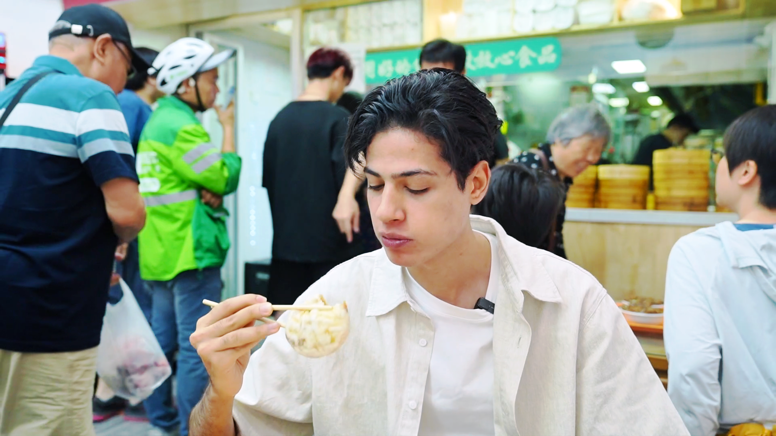 中轴线最南端的永定门,见证着北京的沧桑变迁,更弥漫着诱人的烟火气。刘正曦的小吃之旅自永定门开始,而一碗羊杂汤、网红牛肉包与油条无疑为清晨注入了满满活力。牛肉包皮薄馅香,油条酥脆到掉渣,每一口都让刘正曦回味无穷。