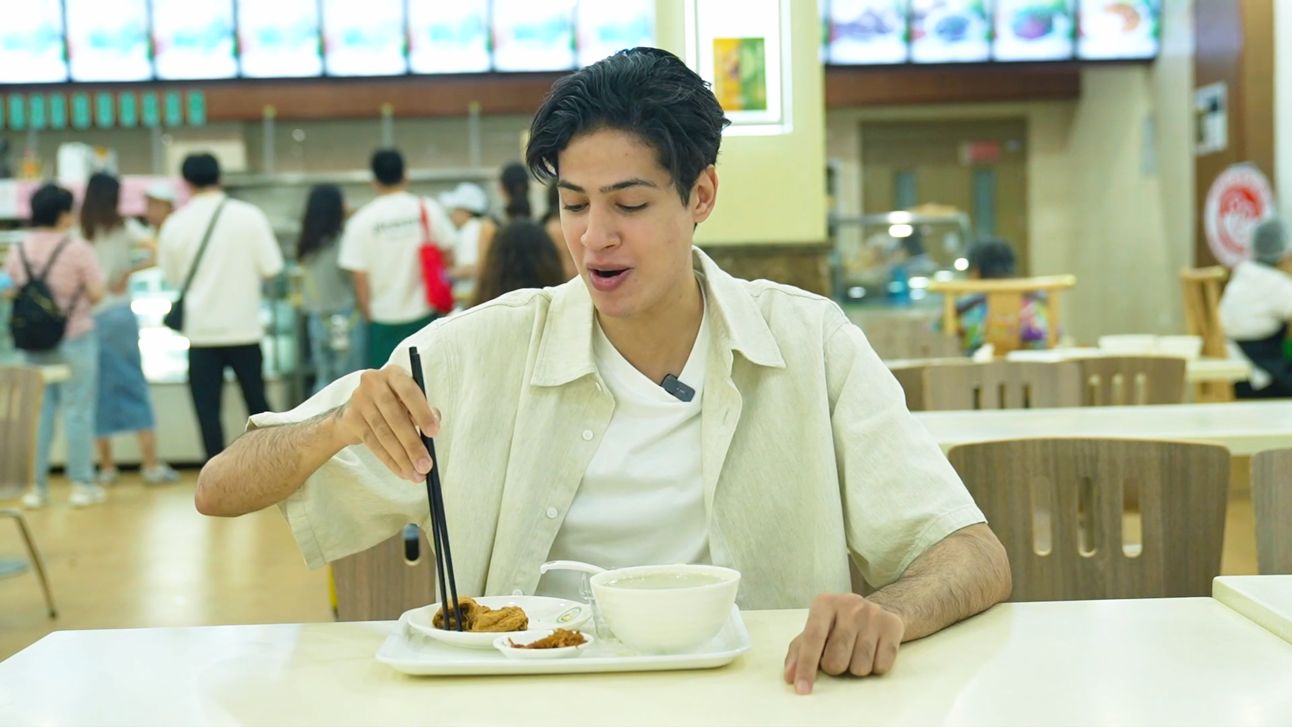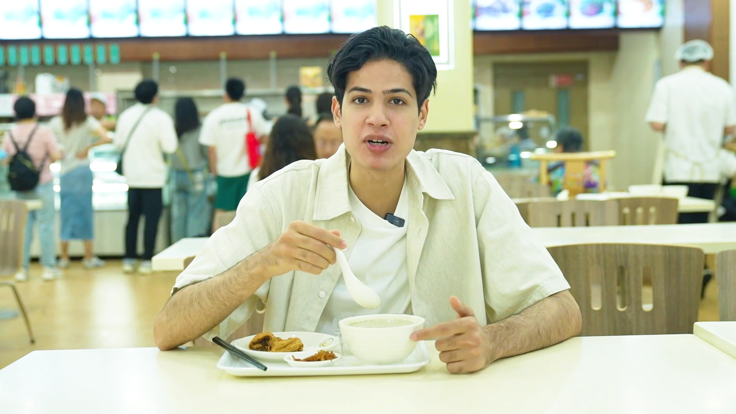 羊杂汤这道有着悠久历史的小吃,以羊杂为主料,加入多种香料熬制而成,是北京人早餐的最爱。这碗羊杂汤汤汁浓郁、味道鲜美,刘正曦直呼“好吃”。仅花费22.9元,就享受到了一顿丰盛的北京早餐,如此实惠的价格,让他不禁感叹北京小吃的亲民。
