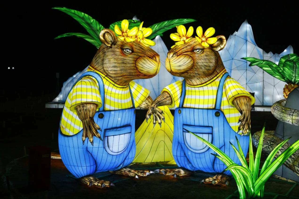 现场不仅有180处创意光影装置与百余组自贡非遗彩灯交相辉映,更有“福照万邦”“马到成功”等极具新春寓意的马年主题灯组点亮夜空。环球微缩景观与中式彩灯相映成趣,国际美食摊位与传统庙会小吃同台竞技,再加上精彩绝伦的中外歌舞、杂技表演轮番登场,夜间逛灯氛围感拉满,让你在一园之内尽览中外风情。