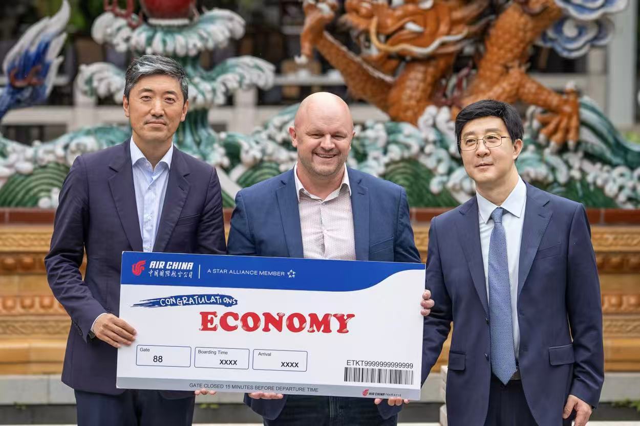 向澳大利亚旅游协会行业事务总监Richard Taylor送出机票