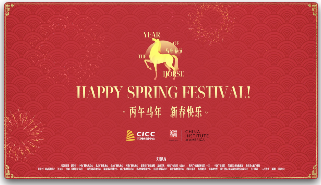 爆竹辞旧岁,骏马启新程。当中国春节零点钟声敲响,神州大地阖家团圆之际,五洲传播中心与华美协进社共同制作的贺岁短片《骏岁欢聚》(Galloping into the Year of the Horse),亮相美国纽约时报广场大屏,向全球观众送去新春祝福,共享欢庆时刻。