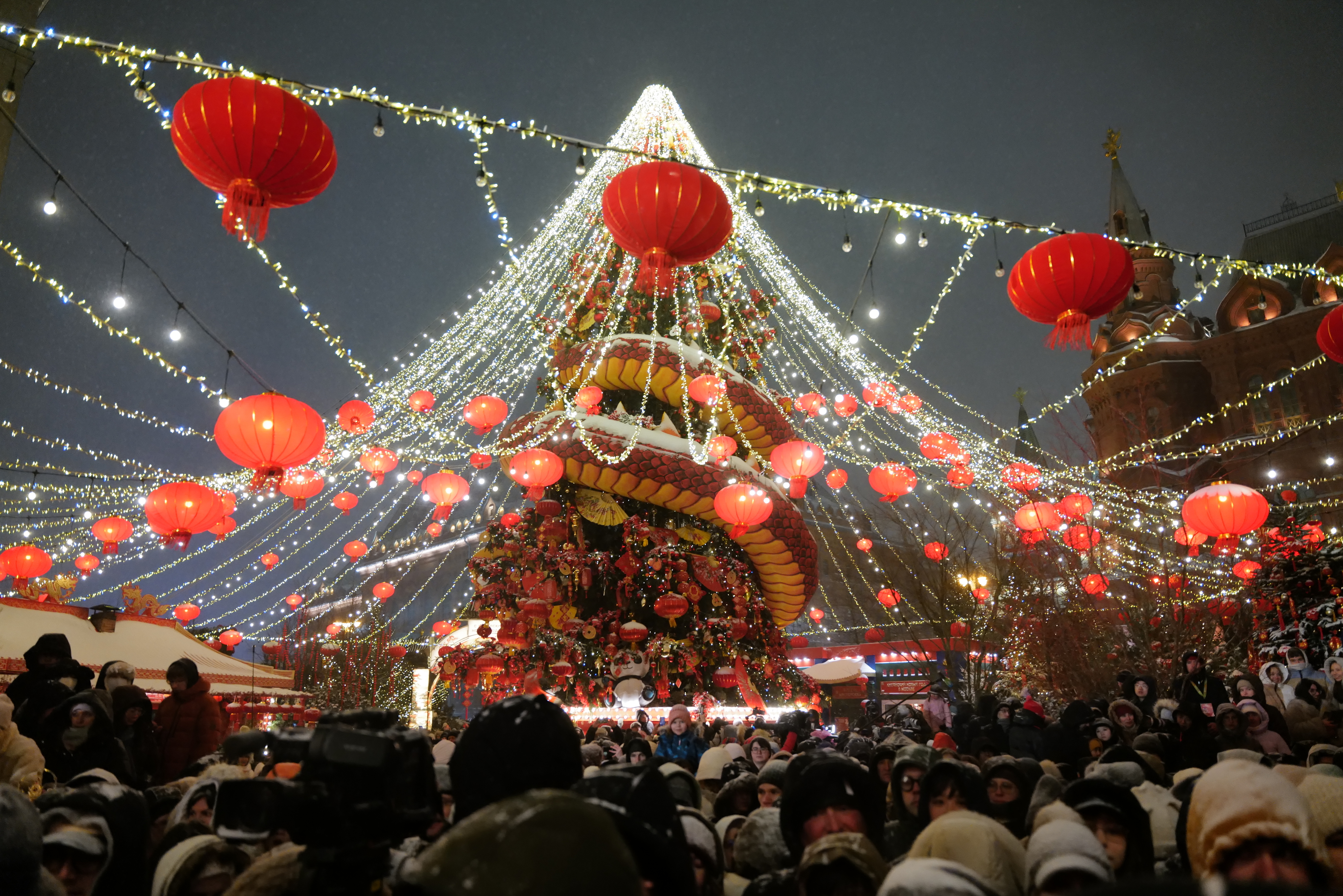 莫斯科市中心马涅什广场上举办的“欢乐春节”中国文化庙会人山人海