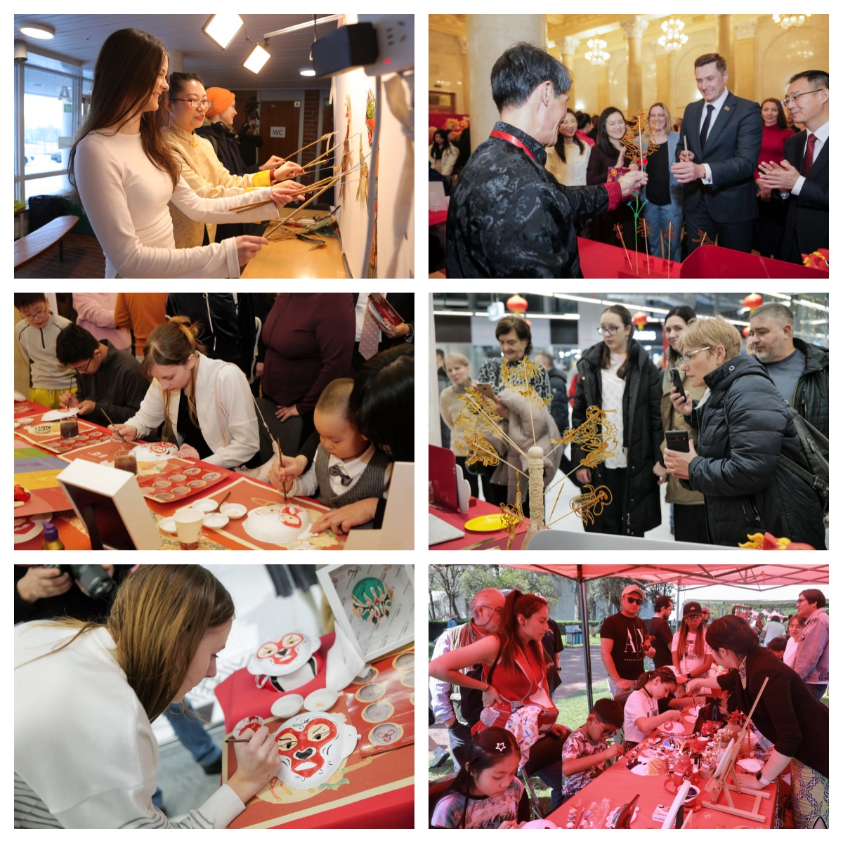 非遗展示互动环节登陆全球多地,让京韵非遗技艺跨越山海,彰显中华传统文化活力。雅典首届春节庙会上,皮影戏、京绣邀请民众参与,让非遗可触可感;悉尼游园会中,曹氏风筝等技艺精彩呈现,传承人讲解渊源,让古老非遗在海外焕发新生,助力中外文明互鉴;芬兰赫尔辛基校园内,传承人现场指导学生舞动皮影、研习京绣、体验京剧“抛袖”,沉浸式感受非遗魅力;在明斯克,北京糖画、掐丝珐琅、京剧脸谱走入首都国家第一商场,深受市民欢迎,成为商圈消费中心的文化热点;墨西哥城非遗工坊中,北京面人郎技艺与当地Alebrijes彩绘对话,搭建跨文化交流纽带;吉隆坡TRX广场上,曹氏风筝、剪纸、吹糖人等非遗项目受热捧,民众争相体验京味新春;在莫斯科马涅什广场上,开设彩绘京剧脸谱、景泰蓝掐丝珐琅等非遗大师班主题蓬房,开展互动教学。从庙会到校园,从工坊到商圈,非遗以最质朴、最生动的姿态走进海外民众的日常生活,于指尖触碰间播撒下文明互鉴的种子,书写着“各美其美,美美与共”的诗行。