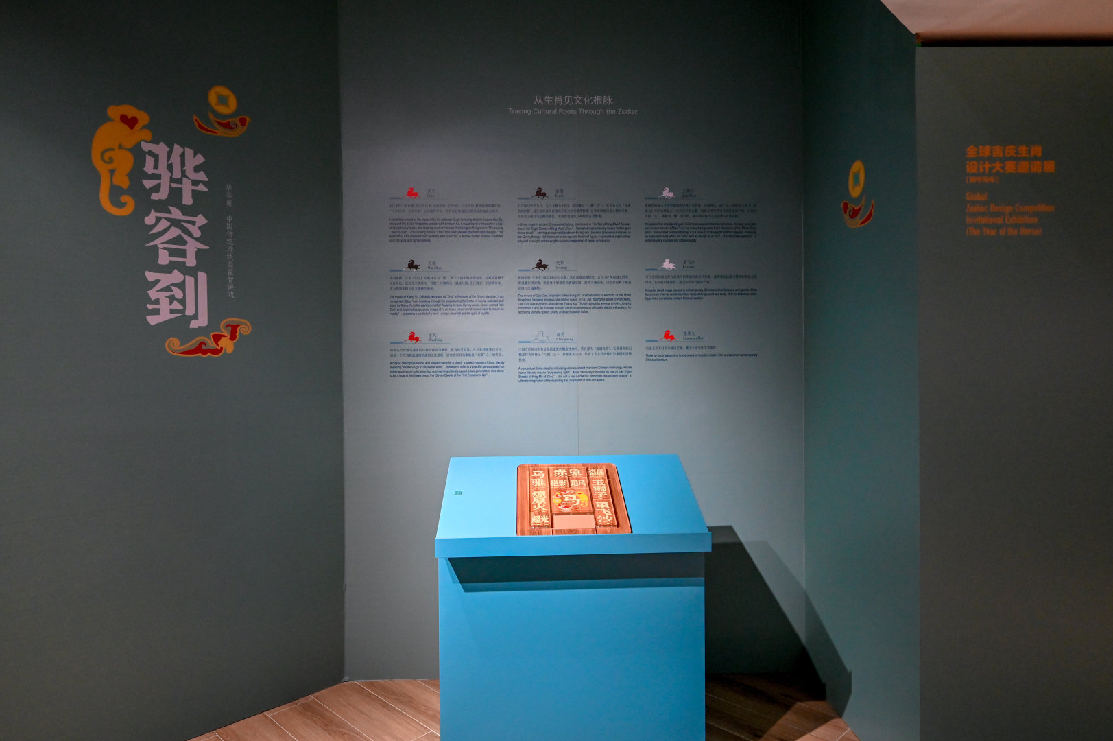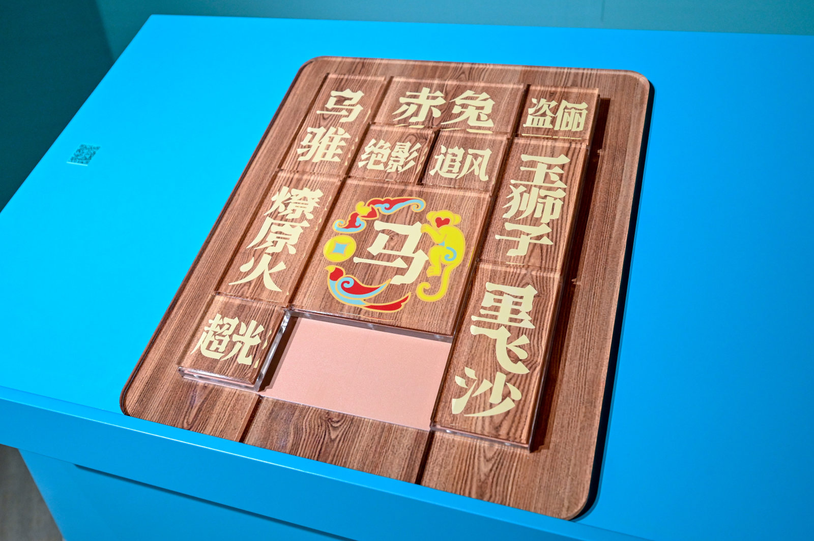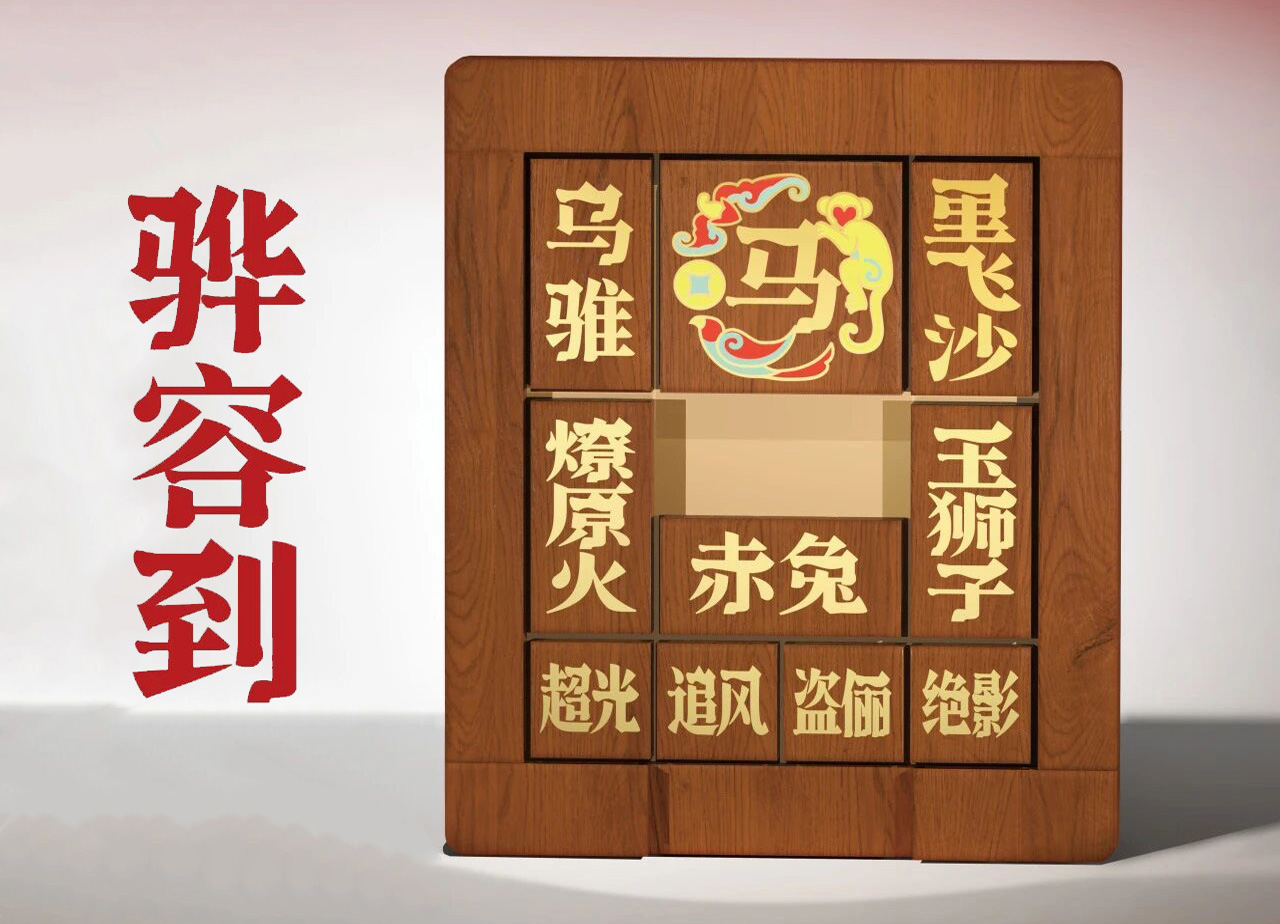 作品《骅容到》以传统益智游戏华容道为基础,将三国人物替换为各自的坐骑战马,如关羽之赤兔、项羽之乌骓、赵云之玉狮子……这些骏马在《骅容到》中不仅成为游戏角色,更使作品整体设计兼具文化意境与视觉张力。