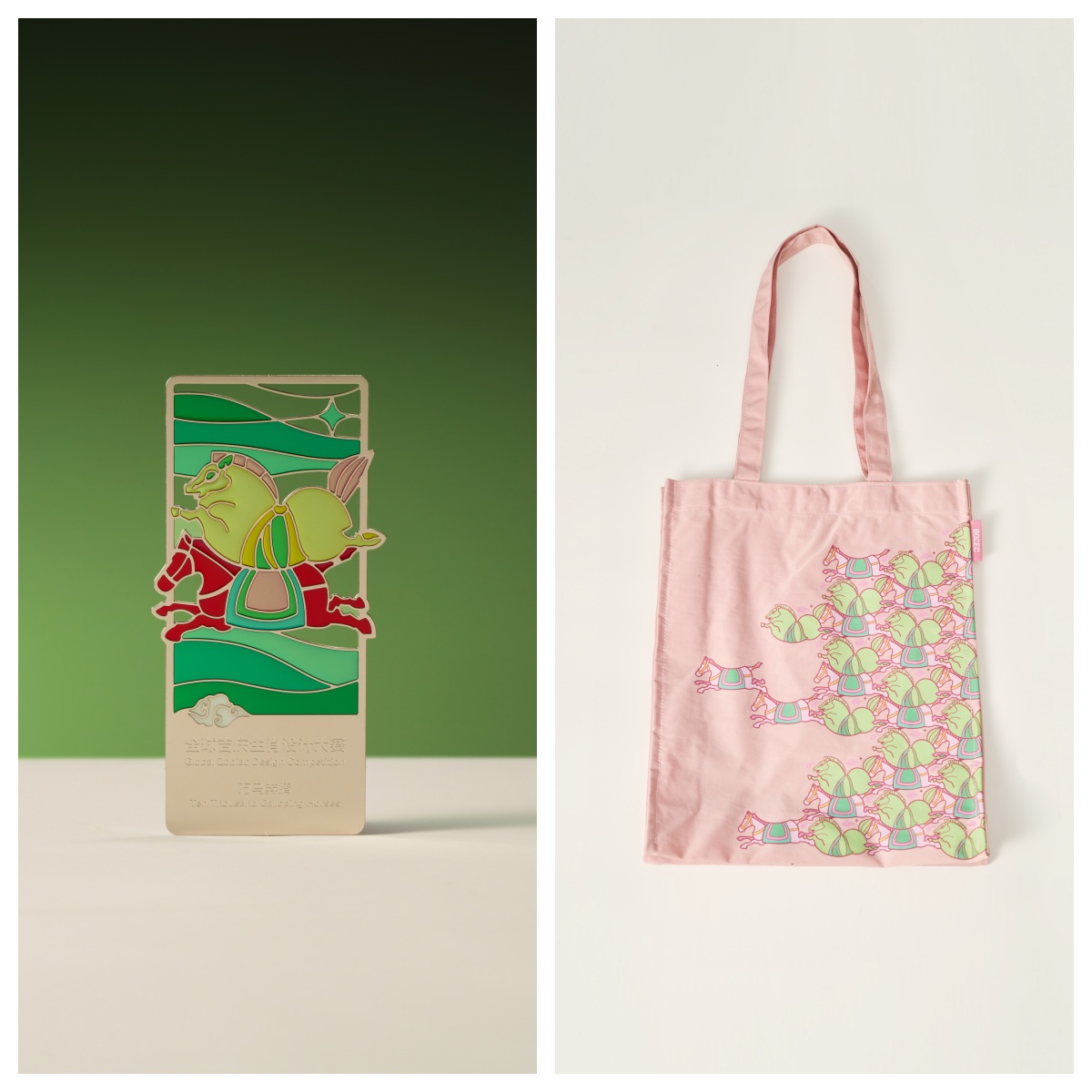 应用《万马奔腾》作品的文创书签与托特包
