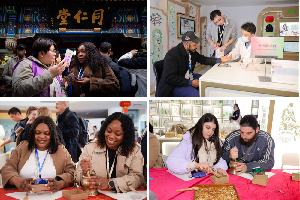 在百年老字号同仁堂的中医药文化空间,一场可感、可闻、可体验的文化之旅生动展开。外交官们参观琳琅满目的药材与器具展示,感受中医“望闻问切”的诊疗过程,亲手制作春季养生香囊,体验古法制药技艺,切身感悟中医药“身心合一”的养生智慧,完成一次与传统中医文化的深度对话。
