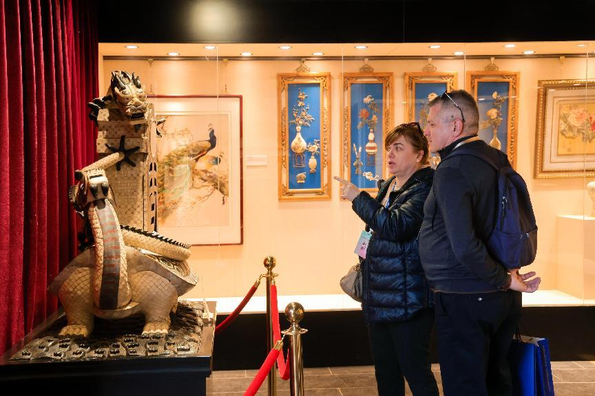 使节们走进燕京八绝博物馆,观看景泰蓝、玉雕、雕漆、花丝镶嵌等中国古代宫廷工艺珍品,透过精雕细琢的技艺与生动讲解,嘉宾们由衷赞叹中国传统工艺承载的极致匠心。