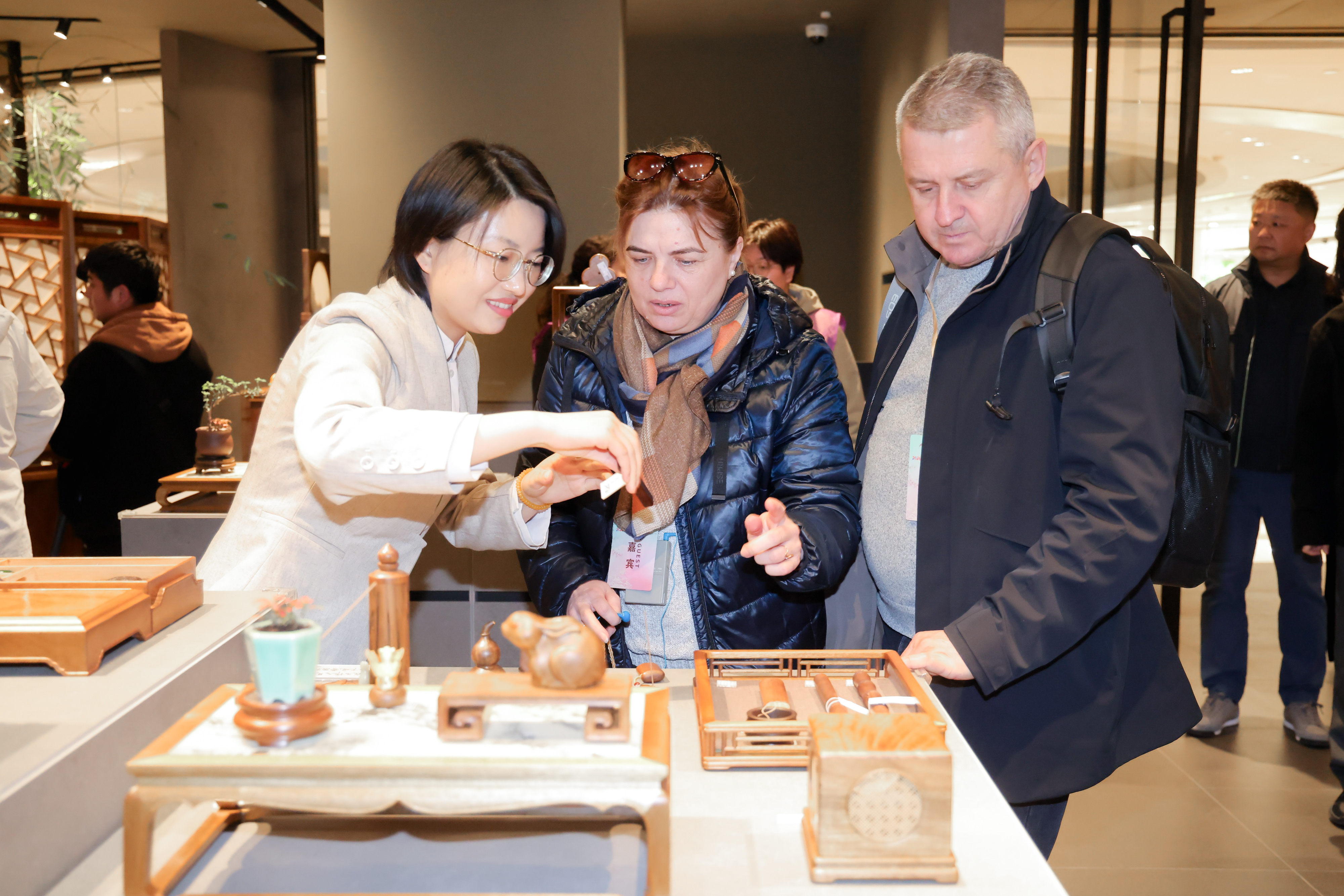傍晚时分,爱莉与外交官们继续走进国贸商城,在以紫檀家具与文人空间陈设为特色的“楠书房”中,感受中国传统茶道魅力;在书香古韵的文房四宝店“暄桐文房”内,研习古琴精妙灵动的弹拨技艺; 在繁华的核心商圈,了解“即买即退”的便利化支付服务。在2026北京时装周的华彩中,艾莉与各国使节共同领略北京创意时尚产业的蓬勃活力。