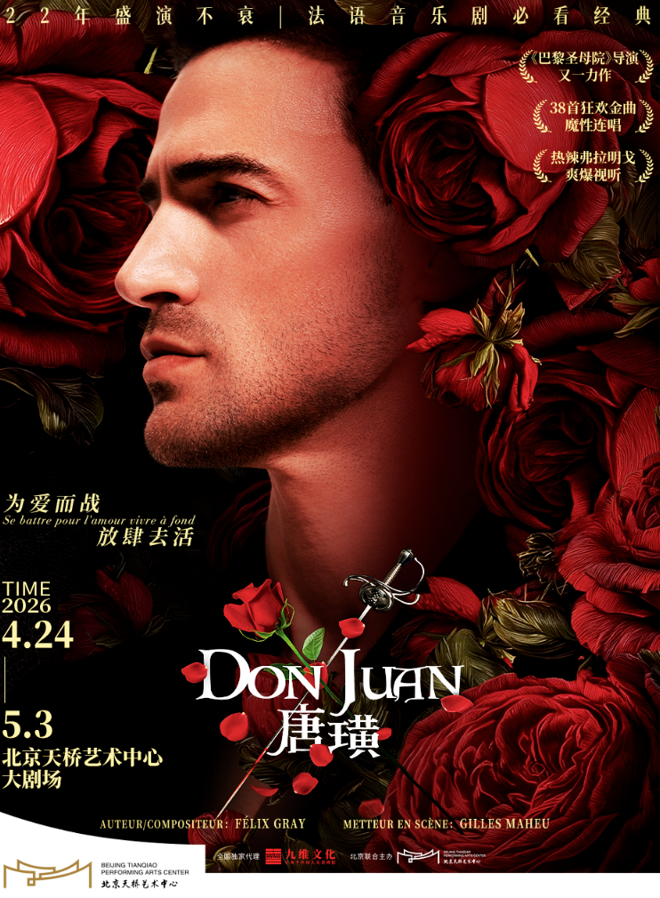 当法语浪漫邂逅西班牙炽热,浪子不羁碰撞真爱救赎,跨越20余年的法语原版音乐剧《唐璜》2026巡演即将到来! 承袭经典法语音乐剧特质,全剧以41首不间断的歌曲驱动叙事,融合流行而富有力量的拉丁旋律、深情的弗拉明戈节奏与吉普赛音乐的自由灵魂,以极致的力与美,致敬极致的爱与恨。